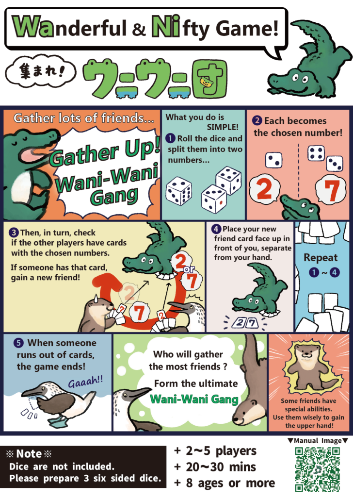 Wani Wani Gang is a charming dice game from the designer of Please Write DEATH Name.